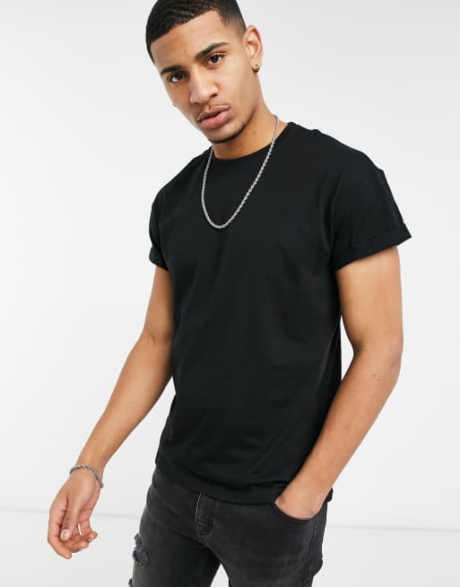 New Look Organic Cotton Roll Sleeve T Shirt In Black Asos